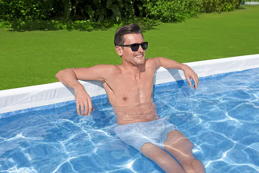 De combinatie van een sterk stalen frame met U-vormige poten en een drielaagse liner zorgt voor uitstekende stabiliteit en duurzaamheid. Het zwembad blijft stevig staan, zelfs bij beweging van het water. Houd rekening met een benodigde ruimte van ongeveer 441 x 241 cm door de uitstekende poten.