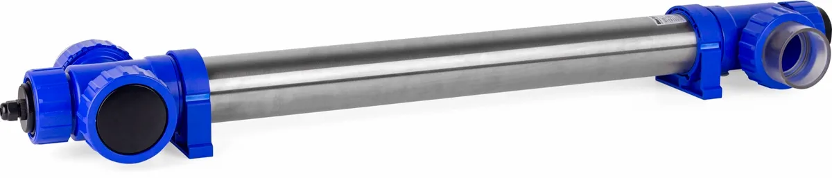 Voor een optimale werking installeer je de unit als laatste onderdeel in de techniekruimte, vlak voordat het water terug naar het zwembad gaat. De lamp werkt op 230V, en kan eenvoudig worden aangesloten. Je hoeft enkel rekening te houden met voldoende ruimte voor het vervangen van de lamp en het kwartsglas.
