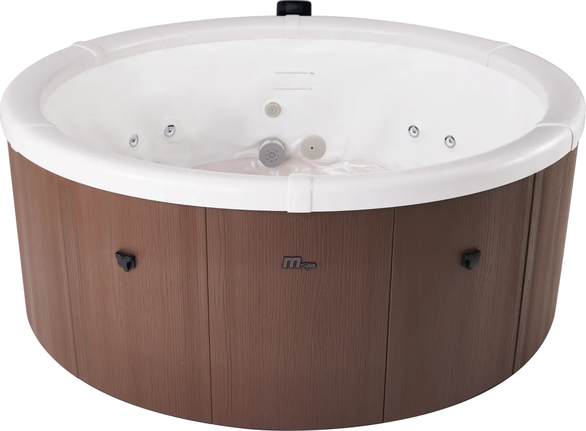 Ben je op zoek naar een spa met het comfort van een opblaasbare spa, maar dan met meer luxe, stabiliteit en een strakke ronde vorm? Dan is de MSpa Rova frame spa – 6 persoons een uitstekende keuze. Deze stijlvolle frame spa heeft een warme, bruine uitstraling en is een echte blikvanger in de tuin. Met een binnenmaat van 160 cm, een buitenmaat van 182 cm en een hoogte van 70 cm biedt de spa voldoende ruimte voor maximaal 6 personen. Voor optimaal comfort wordt aangeraden om met 4 personen tegelijk te genieten. Dankzij de combinatie van 130 bubbeljets en 8 krachtige massagejets ervaar je iedere keer weer een ontspannen wellnessmoment.