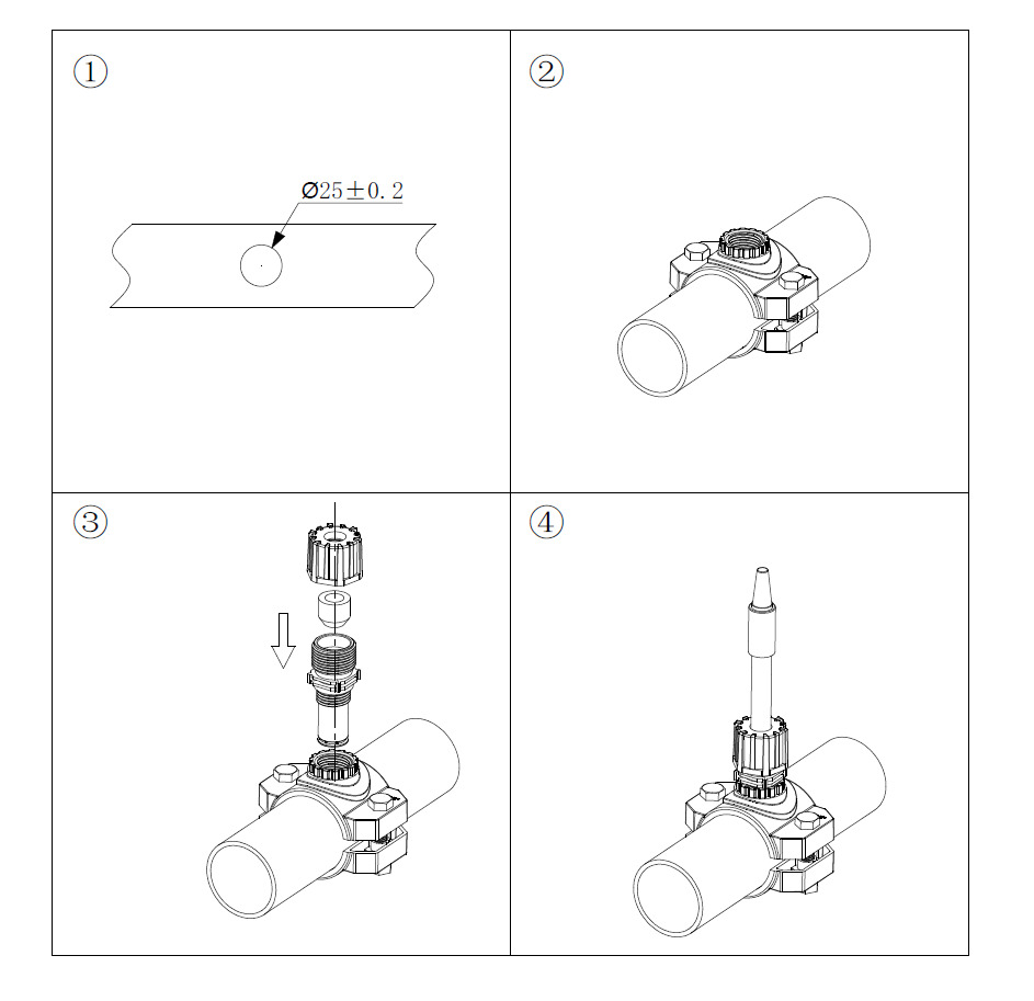 De steunkraag met 1/2″ PSS3-aansluiting maakt het mogelijk de ORP-sonde direct te monteren in de retourleiding van de zwembadinstallatie, op de meest representatieve plek voor een accurate watermonster. Door de sonde in de retourstroom te plaatsen, meet deze continu vers, gecirculeerd water — wat de nauwkeurigheid van de meting ten goede komt. De bijgeleverde DN50 PP klem zorgt voor een stevige en waterdichte bevestiging aan de buis.