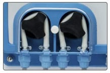 Stille peristalstische pompen met regelbaar debiet (0,5 tot 3,5 l/u) voor spa’s tot grote zwembaden