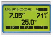 De waarden voor elke parameter worden automatisch elke 10 seconden gelogd: pH-, ORP- en temperatuurwaarden, laatste kalibratiegegevens, configuratieinstellingen en eventuele gebeurtenisgegevens. Voor beoordeling en opslag kunnen eenvoudig gegevens overgezet worden naar een pc met behulp van een flashdrive en de USB-poort.
