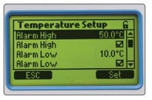 Lage en hoge alarmniveaus kunnen voor alle parameters in- of uitgeschakeld worden Wanneer een alarm wordt geactiveerd, stopt alle dosering. Het systeem biedt ook bescherming tegen overdosering, als de waarde niet binnen een gespecificeerd tijdsinterval wordt gecorrigeerd, gaat de meter in de alarmstatus.