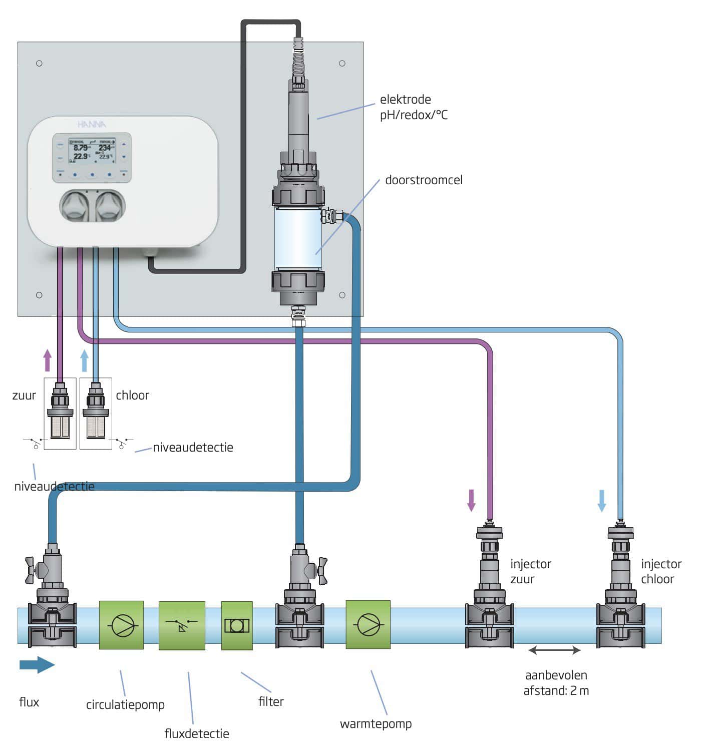 - Proportionele dosering: De doseerpompen passen hun werking aan op basis van de afwijking van de ingestelde waarden, wat zorgt voor een zeer nauwkeurige controle.