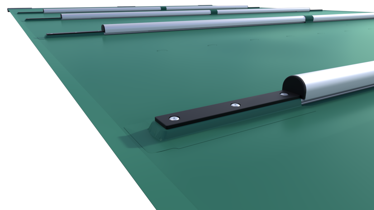 De kern van de “Extra Top” is de robuuste constructie met dubbel uitgevoerde draagprofielen. Dit maakt hem significant sterker en geschikt voor grotere zwembaden of locaties met kans op sneeuwval. Tegelijkertijd is het ons meest compacte model. De afgeplatte profielen rusten direct op uw zwembadrand (met een marge van min. 25 cm per zijde), en de steunbuizen zijn volledig onzichtbaar onder het doek weggewerkt. Dit zorgt voor een strakke en lage afdekking.