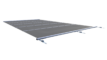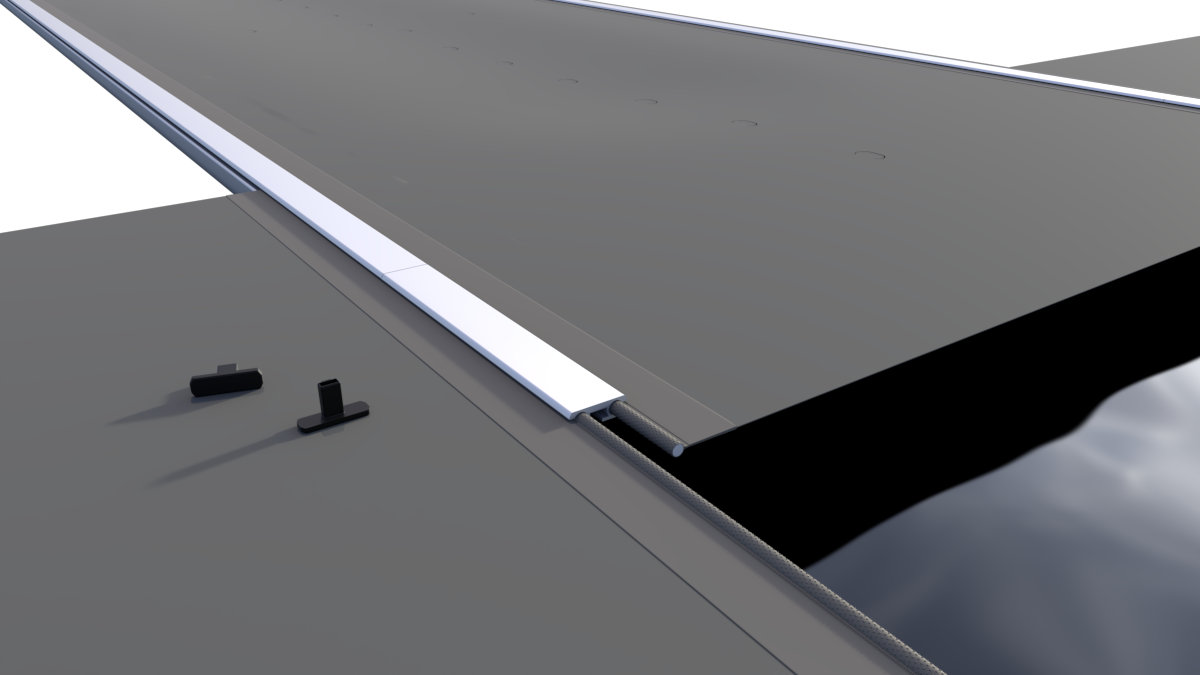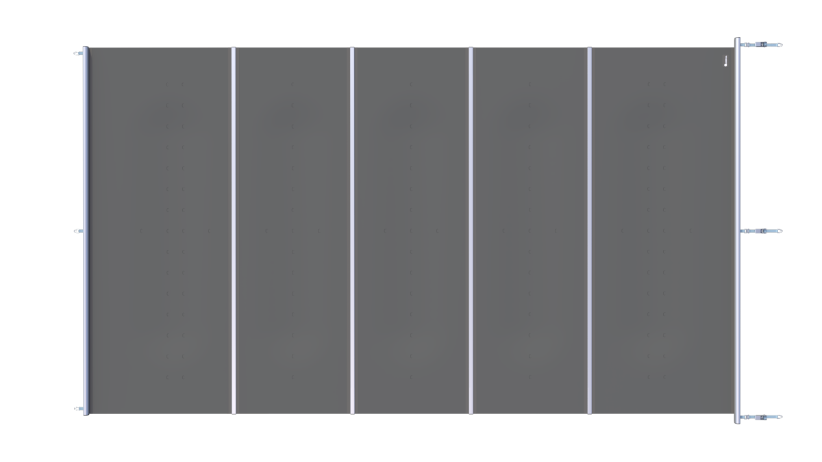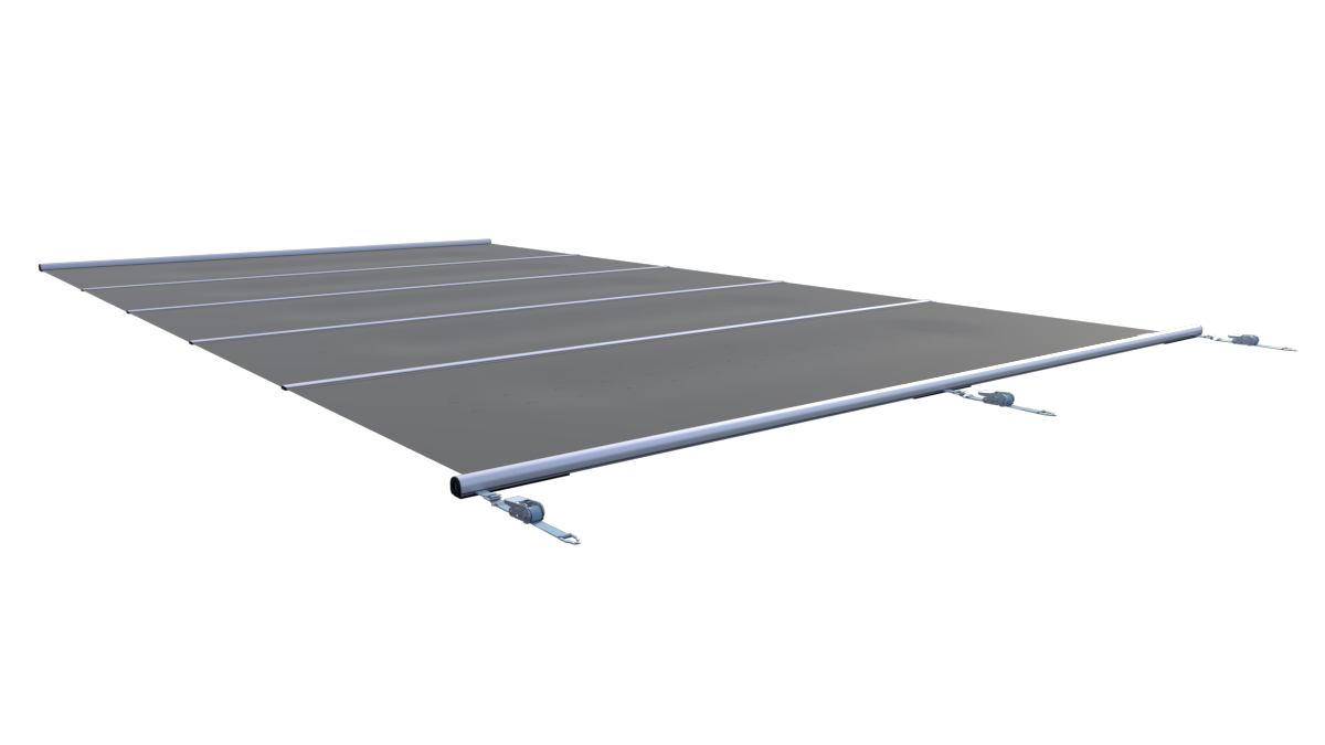 De Flat-afdekking is ontworpen om zo laag mogelijk op de zwembadrand te liggen. Dit wordt mogelijk gemaakt door platte centrale profielen die de segmenten met elkaar verbinden. De profielen zijn afgewerkt met een stevige pees (keder), waardoor de constructie stabiel blijft en de afdekking strak gespannen kan worden.