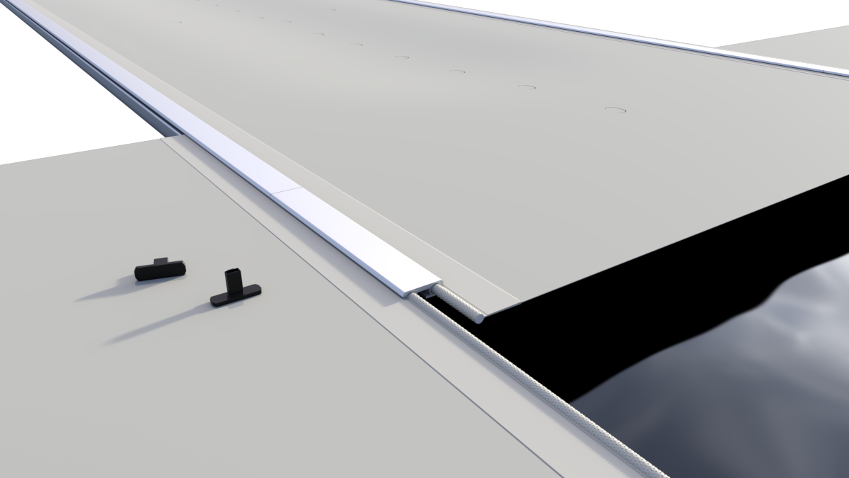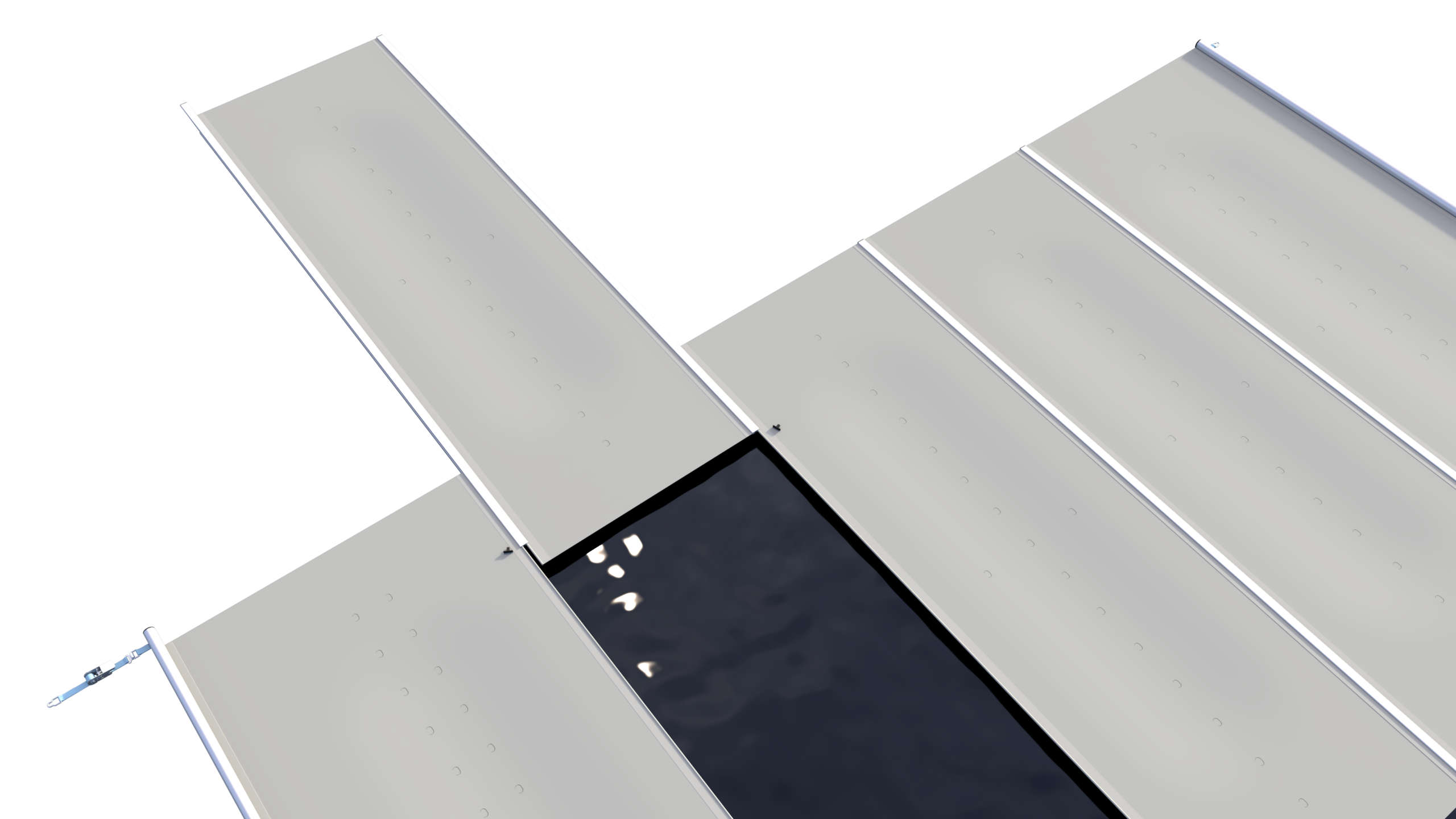 De afdekking bestaat uit losse segmenten die met elkaar verbonden zijn via platte profielen met een stevige pees (keder). Deze constructie zorgt voor een lange levensduur en eenvoudig onderhoud.