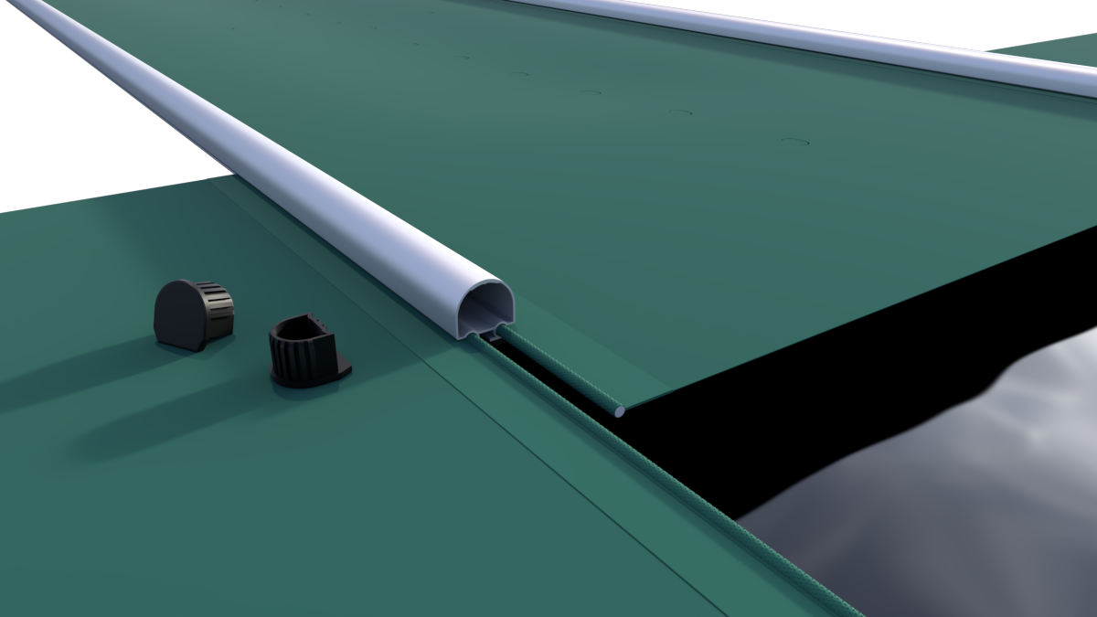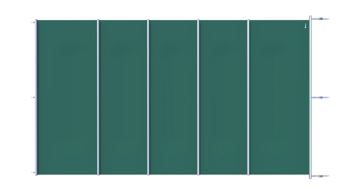 De Segment-afdekking onderscheidt zich door zijn modulaire opbouw. In plaats van één groot doek bestaat deze veiligheidsafdekking uit meerdere afzonderlijke segmenten die met centrale profielen aan elkaar gekoppeld zijn. Elk segment is voorzien van een stevige pees (kedra), wat zorgt voor een sterke en stabiele verbinding.