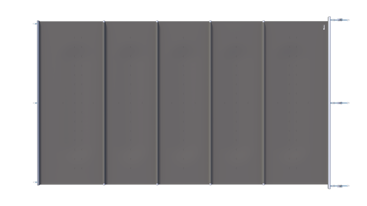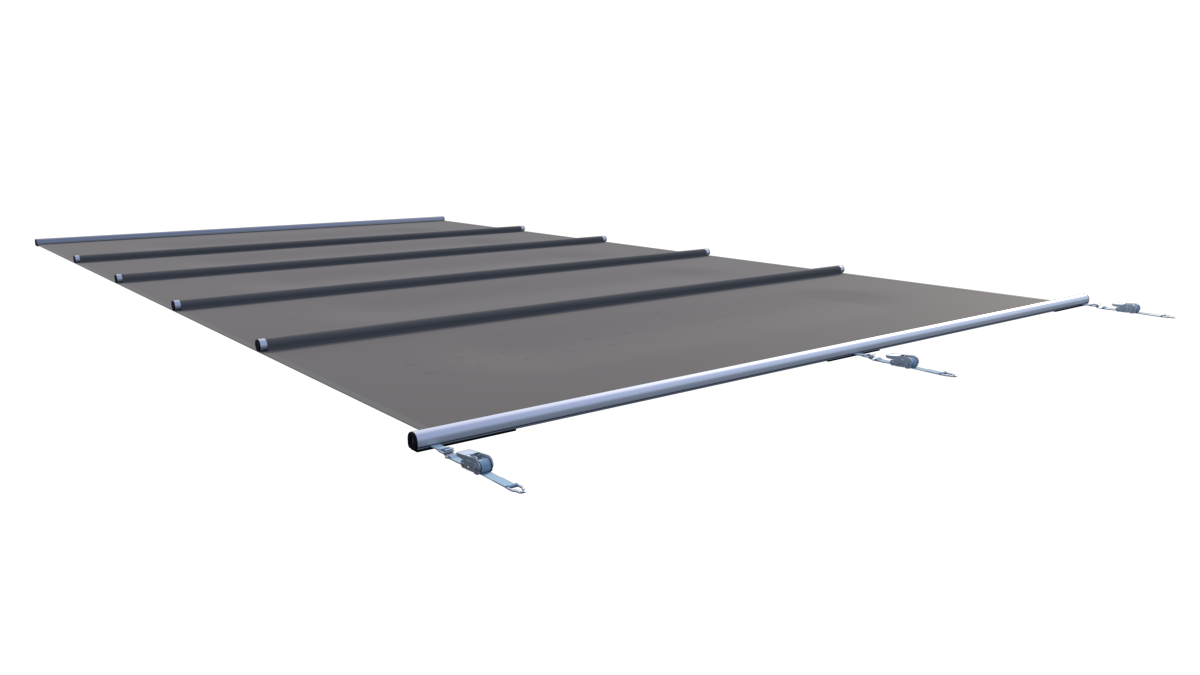 Dit ontwerp biedt twee significante voordelen. Ten eerste zorgt het voor een strak en minimalistisch uiterlijk. U ziet enkel het stijlvolle donkergrijze doek, zonder de visuele onderbreking van glimmende metalen staven. Ten tweede zijn de profielen hierdoor volledig beschermd tegen weersinvloeden, wat de levensduur van de gehele afdekking ten goede komt.